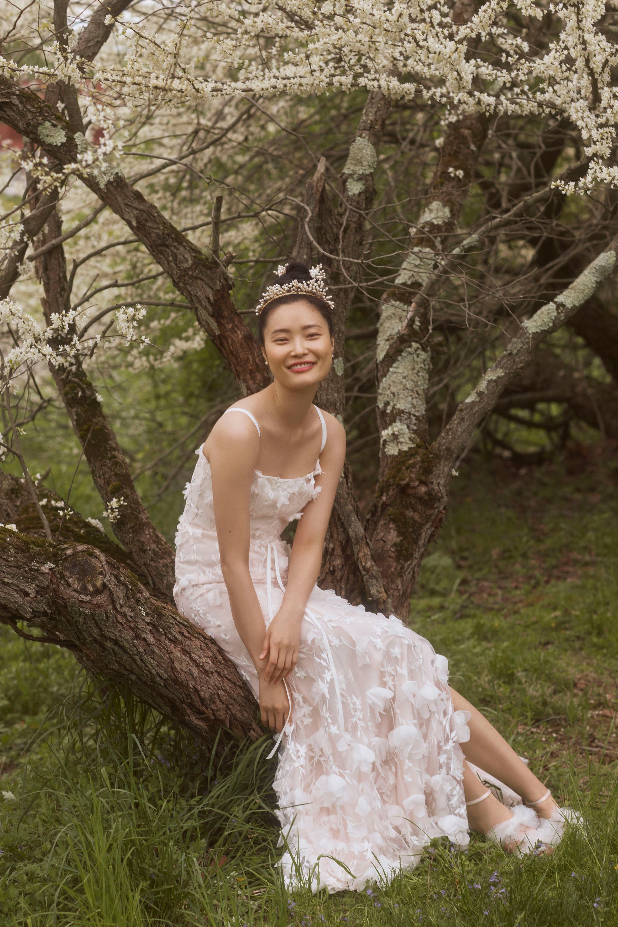 Blush Pink 3d Floral Fitted Gown With Cami Straps Marchesa