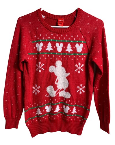 Disney Christmas Sweater Women Xs Red Fuzzy Mickey Mouse Holiday Youth Large Ebay